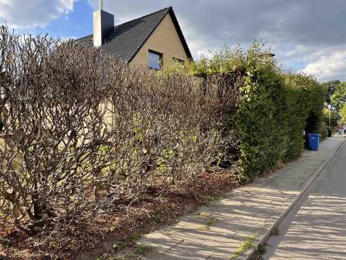 Ein weiteres Kriterium für die Artenauswahl einer pflegeleichten Hecke ist das Regenerationsverhalten nach größeren Eingriffen – z.B., weil Sie eine Saison lang mit dem Heckenschnitt pausiert haben. Soll dann nicht nur der Jahreszuwachs zurückgeschnitten, sondern ein Schnitt ins ‚alte Holz‘ vorgenommen werden (oder vorgenommen werden müssen, z.B. weil öffentliche Gehwege freigeschnitten werden müssen), dann funktioniert das nicht mit allen Gehölzarten.